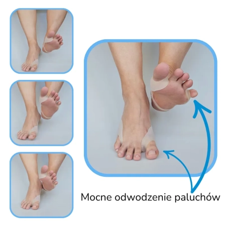 Zapobieganie deformacjom stopy – ogranicza nachodzenie się palców i podwijanie się małego palca.